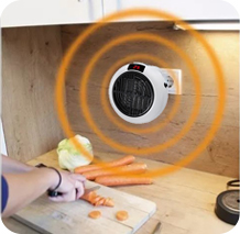 Безопасный керамический нагревательный элемент экологичен и не перегревает корпус. Он безопасен даже для самых маленьких и имеет опцию автоматического отключения. Цифровой дисплей отображает температуру, до которой прогреется воздух